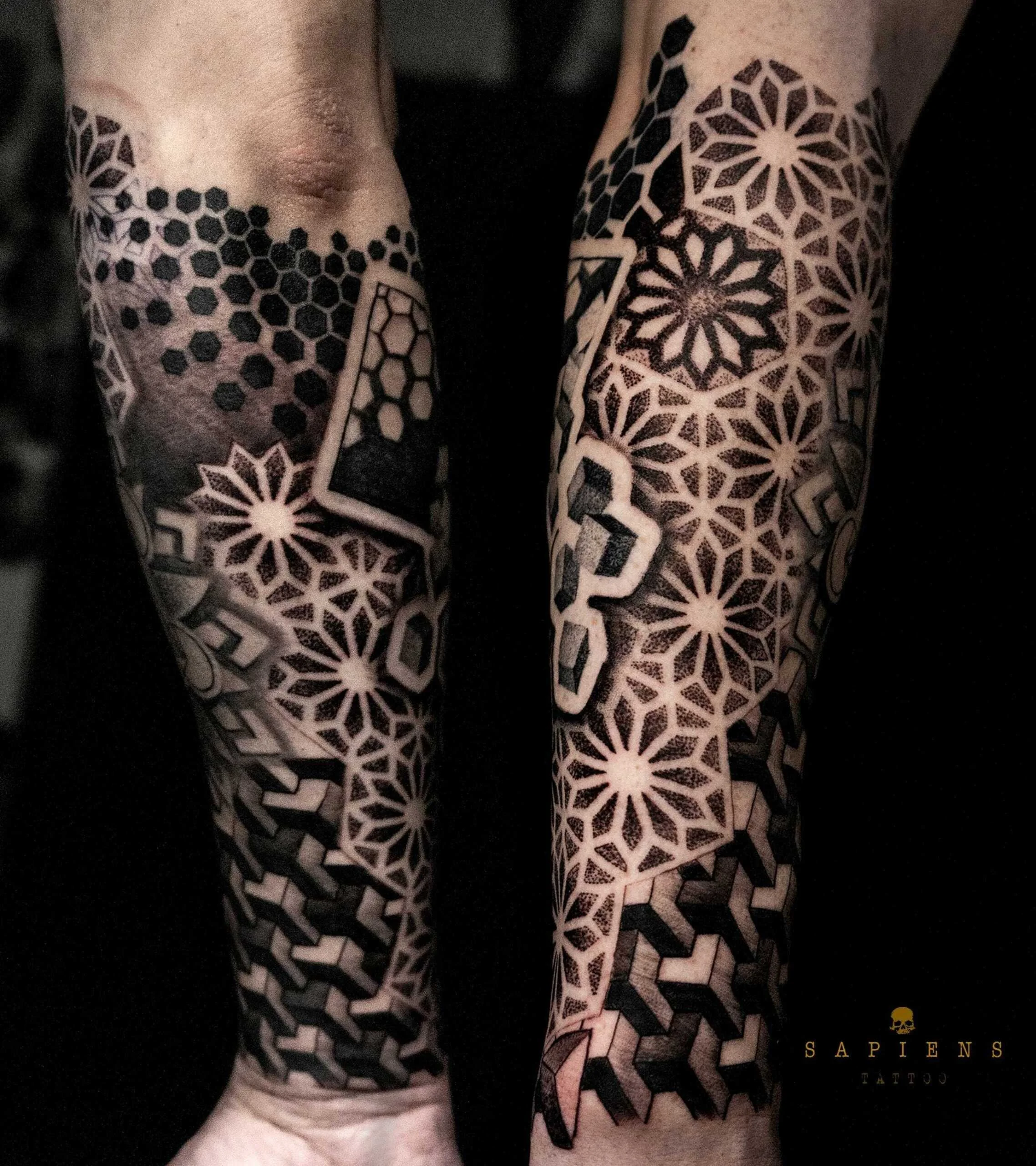 5. Diversitate de Stiluri: Tatuajele geometrice pot fi realizate într-o gamă largă de stiluri și direcții. De la tatuaje black and gray până la tatuaje colorate sau chiar aquarelle, puteți alege stilul care se potrivește cel mai bine viziunii dvs. artistice.